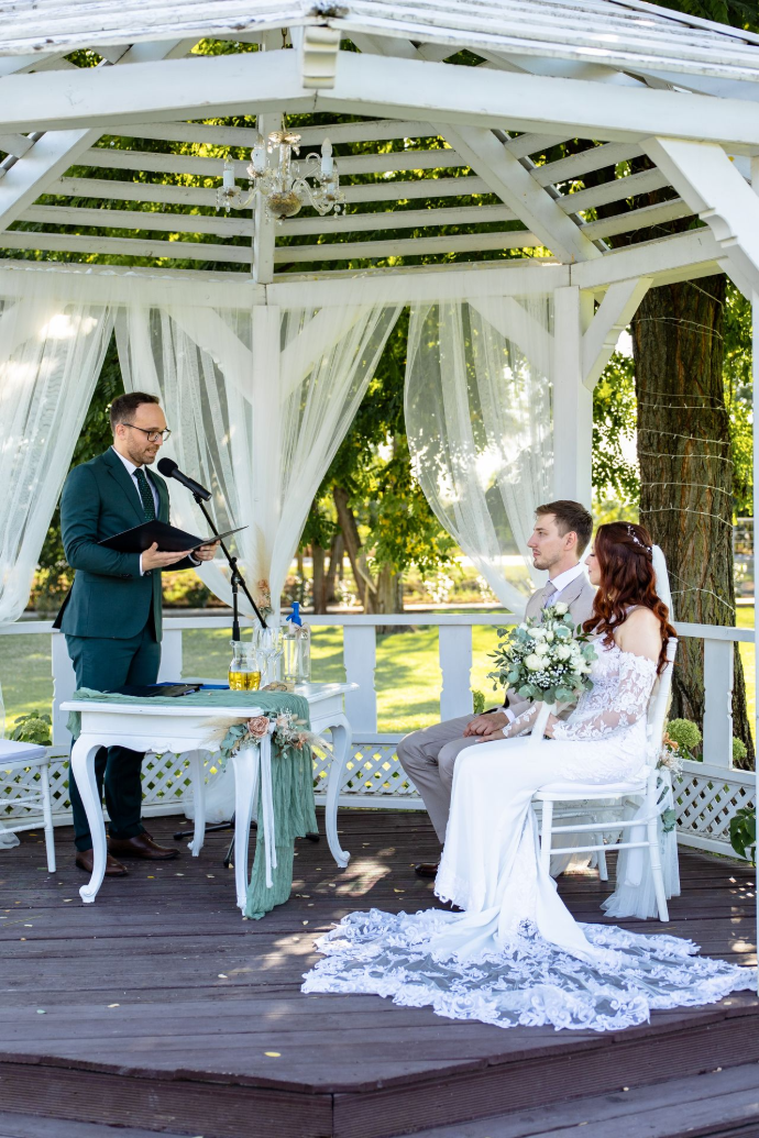 Az esküvő szerintünk is, és a vendégek szerint is nagyon jól alakult, köszönjük a rengeteg segítséget, a hangulatteremtést, az egész napos kitartást, amivel hozzájárultál, hogy ennyire élvezetes és nem utolsó sorban stresszmentes legyen a nap. A polgári szertartás különösen tetszett mindenkinek, köszönjük, hogy ennyi energiát fektettél a beszéd megírásába.